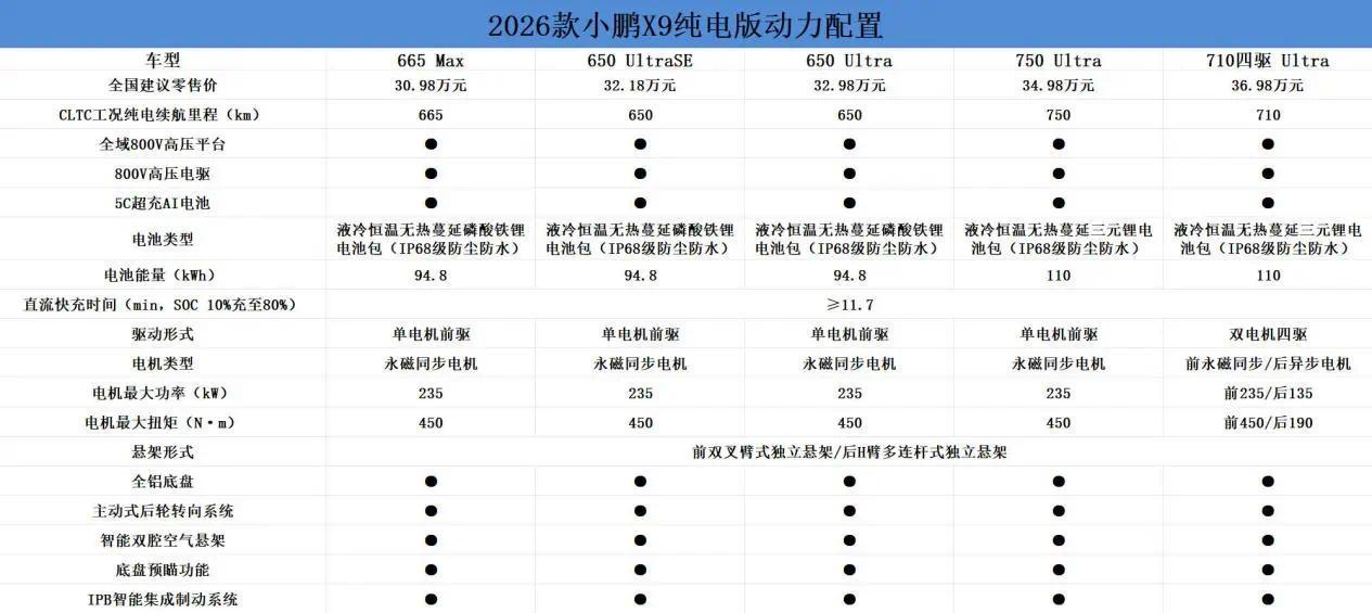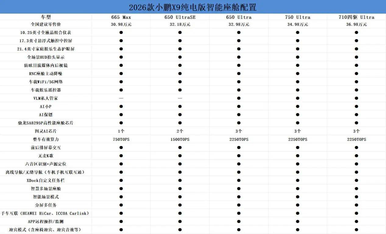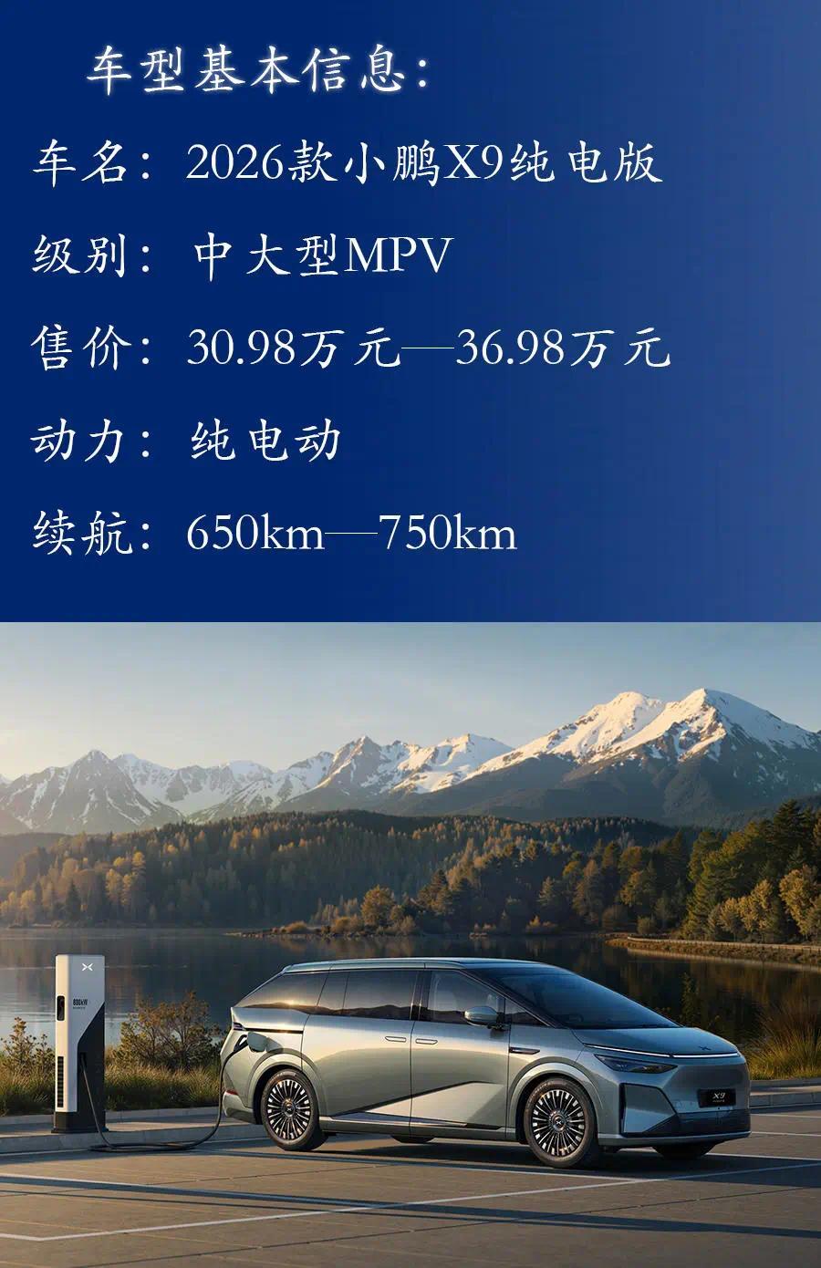 3月2日,2026款小鹏X9纯电版上市,售价30.98万元起。作为小鹏汽车纯电旗舰MPV车型,不仅实现与增程版的产品力全面对齐,更在智能科技、续航、空间与安全上完成升级优化。这款新作具体产品力如何,有哪些配置差异?