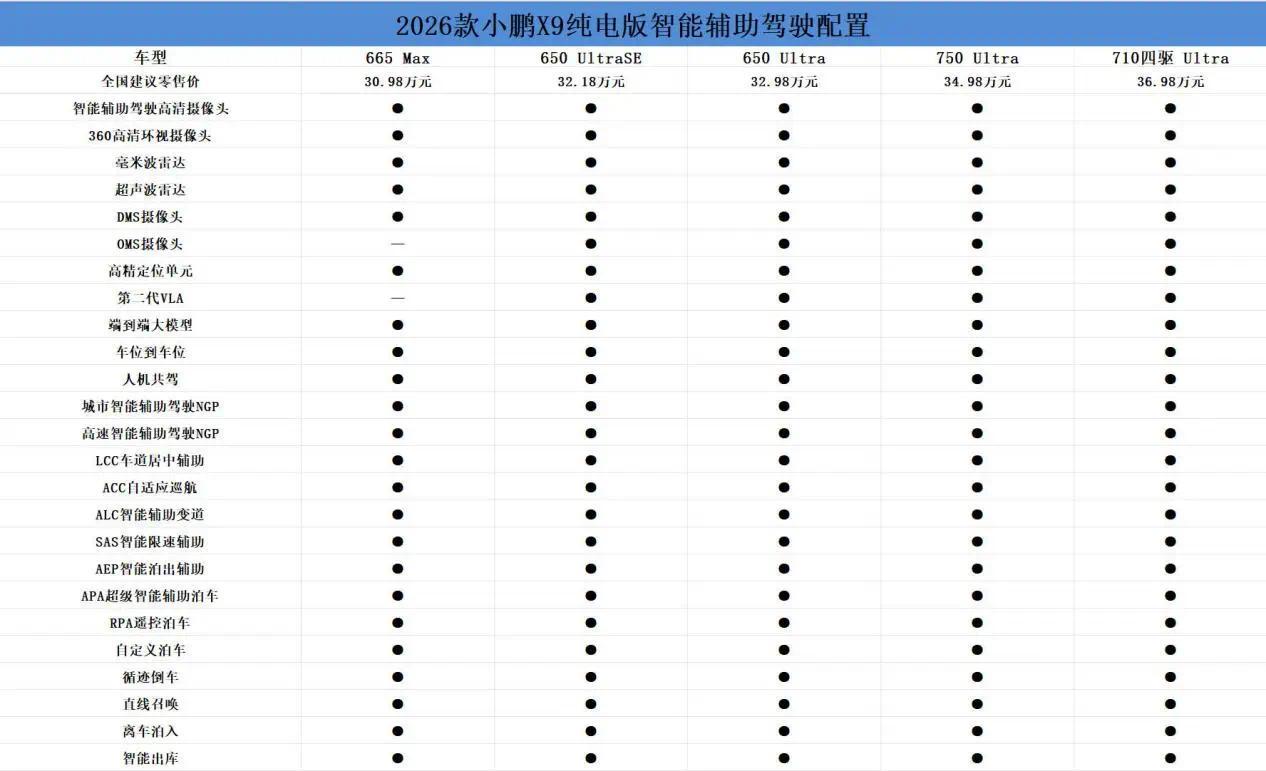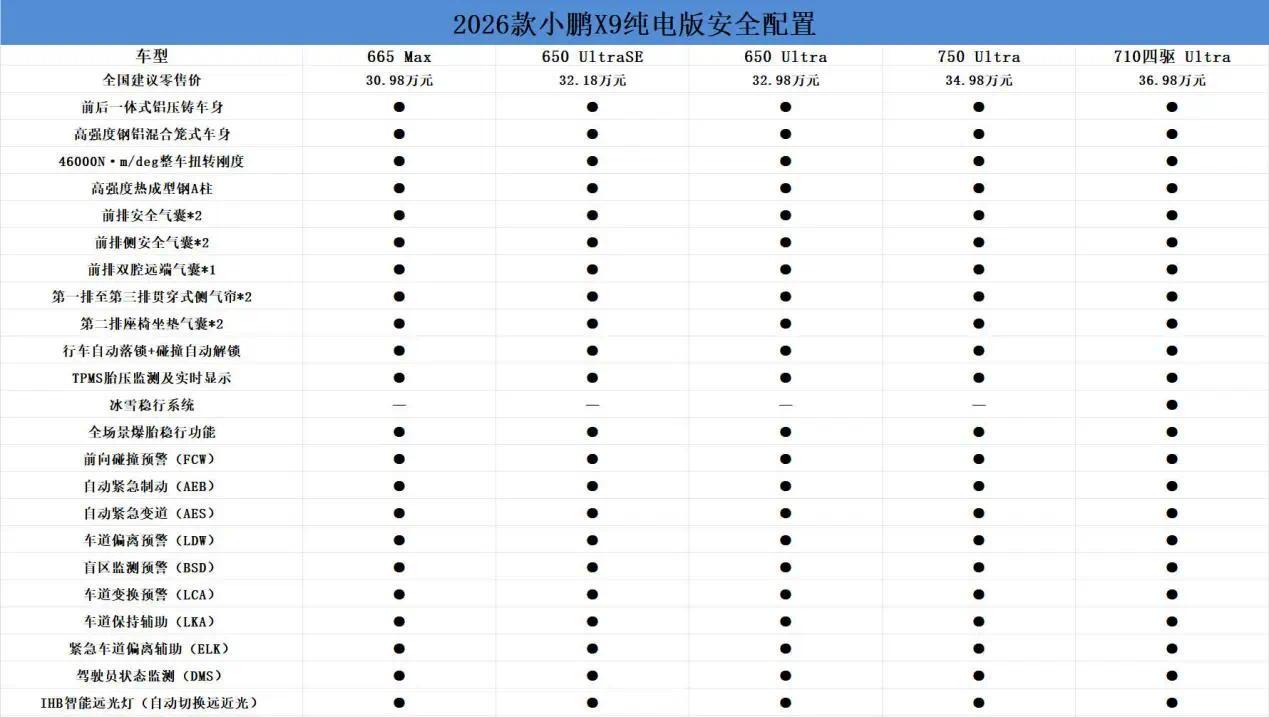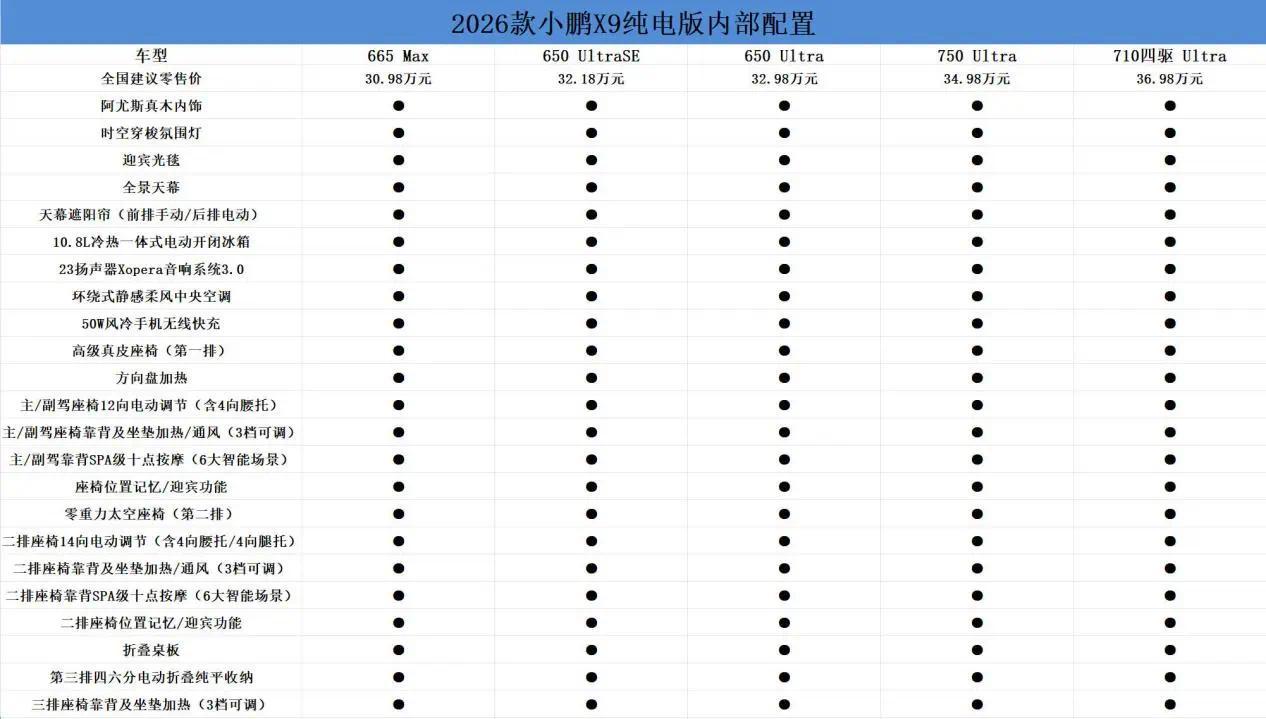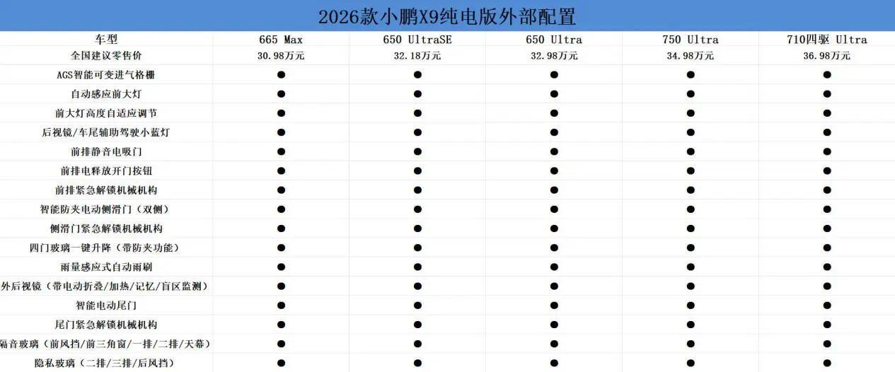 3月2日,2026款小鹏X9纯电版上市,售价30.98万元起。作为小鹏汽车纯电旗舰MPV车型,不仅实现与增程版的产品力全面对齐,更在智能科技、续航、空间与安全上完成升级优化。这款新作具体产品力如何,有哪些配置差异?