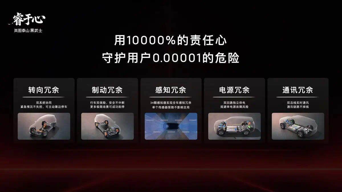 此次上市发布会由央视新闻全平台直播,成为中国智驾发展的重要见证。岚图泰山Ultra搭载行业最强四激光雷达矩阵,其中896线激光雷达实现从“点云级”到“图像级”的跨越,14cm小目标识别距离达120米,配合34颗智慧传感器,构建全场景无死角感知网络。