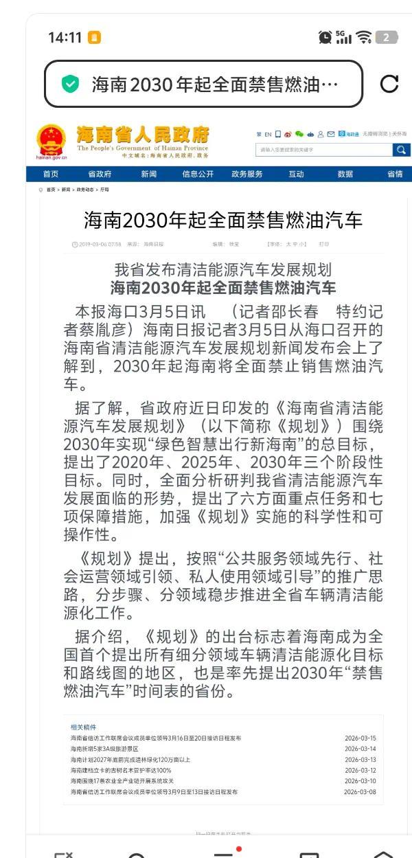 海南网传 4 年后禁售燃油车,并非个例,而是国家新能源汽车战略推进的缩影。从双碳目标的提出,到各省市逐步出台的燃油车禁售、限行政策,再到新能源汽车购置补贴、充电桩建设等配套福利,国家正从政策、产业、配套等多方面,推动汽车产业向电动化、绿色化转型。海南作为中国最大的经济特区,同时也是清洁能源岛,率先推进燃油车禁售,既契合其清洁能源发展定位,也能为全国新能源汽车的普及积累经验,是新能源战略落地的重要一步。